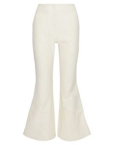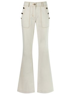 Off white cotton blend flared trousers from Talie Nk featuring belt loops and a button & zip fastening.