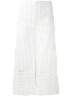 Белые брюки 'Elisa' из хлопкового микса от TOTEME. Обрезанная длина, широкие брючины, тонкие полоски.