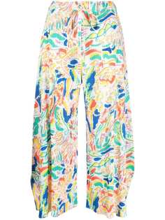 Графичный принт, плиссировка, свободный крой, завышенная талия, укороченная длина и кулиска на талии. Цвет: разноцветный.