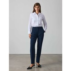 Синие брюки в тонкую полоску без застежки выполнены из тонкой костюмной ткани с шерстью, которая обеспечивает комфортный микроклимат и безупречный внешний вид. Широкий эластичный пояс, зауженный крой с приутюженными стрелками. Боковые швы заканчиваются ...