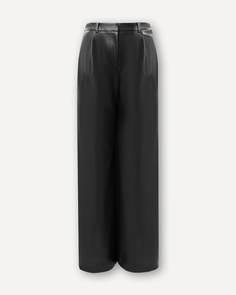 Широкие прямые брюки из гладкой искусственной кожи черного цвета. Средняя посадка, пришивной пояс с защипами. Скрытая застежка. Состав: полиуретан