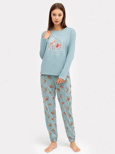 Стильная пижама женская из высококачественного хлопка с принтом в виде мишек. Джемпер имеет свободный силуэт, длинные рукава-реглан с манжетами, горловину круглой формы. Брюки свободного силуэта длиной до косточки с классической линией талии и манжетами...