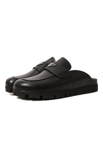 Для изготовления черных сабо с массивной протекторной подошвой, будто позаимствованной у трекинговой обуви, использовали мягкую, при этом плотную кожу с легким блеском. Миучча Прада украсила широкий фигурный ремешок на союзке узнаваемым треугольным элем...