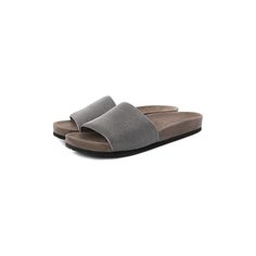 При изготовлении шлепанцев коллекции сезона весна-лето 2021 года дизайнеры марки, основанной Брунелло Кучинелли, сделали ставку на комфорт. Модель с анатомической стелькой сшили из фактурной мягкой замши. На материал нанесли пропитку, которая защищает м...