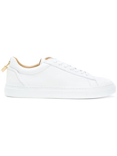 Кроссовки на шнуровке с декоративным замком от Buscemi. Закругленный носок, язычок с логотипом, фирменная стелька, золотистая фурнитура и кожаная подошва без каблука. Цвет: белый. Состав: Кожа