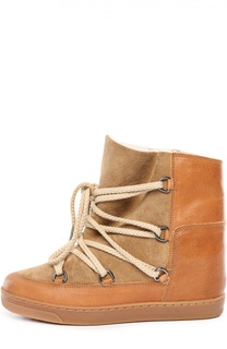 Полусапоги Nowles из осенне-зимней коллекции бренда, основанного Изабель Маран, выполнены из мягкой бежевой замши и кожи в тон. Высокая шнуровка прочно фиксирует обувь на ноге. Подошва с противоскользящим протектором изготовлена из прочной текстурирован...