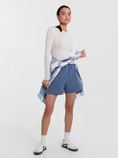 Свободные мини-шорты из легкого трикотажного футера. Высокая посадка на талии, подогнутые нижние края, эластичная резинка в поясе, регулировочный шнурок-завязка, а также удобные боковые карманы – комфортный минимализм. В составе полотна шорт женских спо...