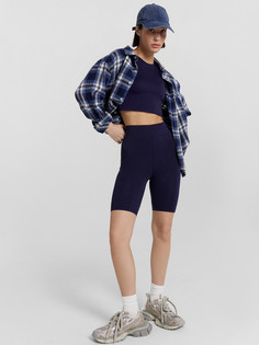 Короткие шорты из трикотажного интерлока. Силуэт облегающий, линия талии – высокая. Широкий фигурный пояс с эластичной тесьмой внутри дарит абсолютный комфорт. Боковые швы перенесены вперед. Нижние срезы подогнуты. Отличные шорты для спорта и активного ...