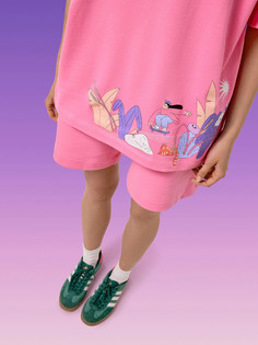 Милый комплект для сна из высококачественного хлопка. Просторную футболку прямого силуэта с круглым вырезом и забавным принтом дополняют короткие шорты на резинке, украшенные кокетливой рюшей. Комфортный материал позволяет коже дышать, пижама эластичная...