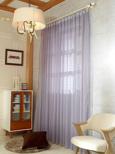 По всему полотну продольная выработка из плотных нитей и прерывающихся между собой. Крепление на зажим для штор, который не входит в комплект. Размеры 230х400 см.