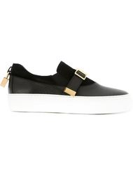 Белые кожано-замшевые кеды-слипон с пряжкой от Buscemi.