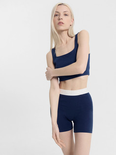 Короткие шорты из трикотажного интерлока. Силуэт облегающий, линия талии – высокая. Широкий фигурный пояс с эластичной тесьмой внутри дарит абсолютный комфорт. Боковые швы перенесены вперед. Нижние срезы подогнуты. Отличные шорты для спорта и активного ...