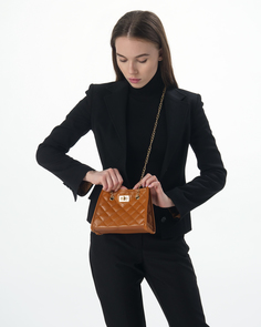 Элегантная кожаная сумка с жестким корпусом подходит для офиса и отдыха. Клапан декорирован кокетливой кисточкой в тон. Частично скрытый под клапаном накладной карман дополнен металлическим логотипом. На молнии. Ремень индивидуально регулируется по длин...