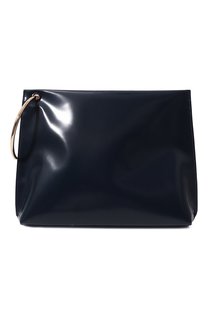Темно-синяя сумка с одним отделением и внешним карманом дополнена тонкой золотистой ручкой-кольцом. Дрис ван Нотен выбрал для создания однотонного аксессуара, застегивающегося молнией, гладкую полированную кожу с глянцевым блеском. Внутрь поместятся, пл...