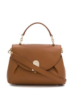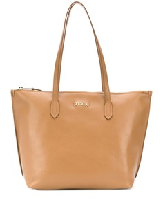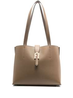 Сумка-тоут с верхней ручкой от Furla. Верхняя ручка, откидной верх с застежкой-защелкой, лямка на плечо, золотистая фурнитура и внутренний прорезной карман.