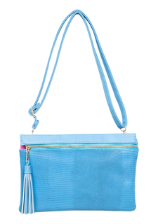 Яркая сумка-клатч с тиснением «под кожу рептилии» - модный женский аксессуар. Основная застежка-молния декорирована кокетливой кисточкой тон в тон. Внутри яркая контрастная подкладка с множеством карманов: для мелочей, для смартфона и на молнии. Наплечн...