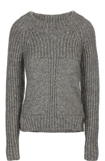 Вязаный свитер с объемными рукавами от Derek Lam 10 Crosby. Подол и манжеты в рубчик, круглая горловина в рубчик и полосатый узор.