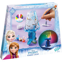 Набор для создания НАСТОЛЬНОЙ ЛАМПЫ Холодное сердце. В набор входят: 2 картонные подставки, абажур для раскрашивания, светодиодная мерцающая лампа-свеча + батарейка, клей с серебристыми блестками, 4 баночки с красрасками, кисть, инструкция. Что ты смож...