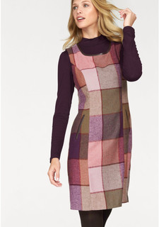 Модный вариант для повседневного комбинирования с блузками, водолазками и лонгсливами - платье-сарафан без рукавов в крупную клетку. Мягкий, теплый материал на подкладке идеально подойдет для холодного сезона. Круглый вырез и имитация карманов отделаны ...