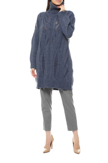 Вязаный свитер-платье свободного силуэта выполнен в стиле гранж. Прозрачные ритмические протяжки создают мягкую форму, и позволяют проявить фантазию, в выборе цвета нижнего слоя. Высокий, мягкий воротник-дополнительный бонус к вашему комфорту. Универ