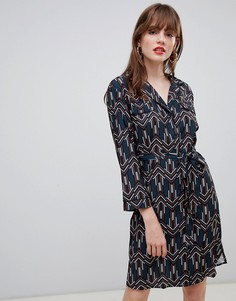 Casual dress by Influence, Ткань с принтом, V-образный вырез, Планка на пуговицах, Завязка на талии, Классический крой, точное соответствие размеру, Машинная стирка, 100% полиэстер, Размер на модели: UK 8/EU 36/US 4, рост модели: 168 см. О БРЕНДЕ INFLUE...