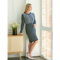 Вязаное платье женское полуприлегающего силуэта длиной до колена. Рукава втачные длинные. Горловина круглая, обработана бейкой. Декорировано оригинальным мерцающим абстрактным узором. Платье выполнено из полушерстяной пряжи жаккардовым переплетением и ...