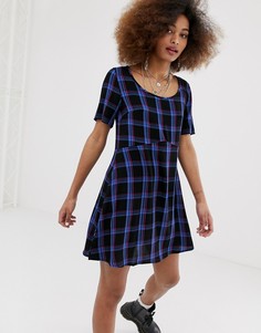 Платье COLLUSION, Прекрасный вариант для дневного образа, В клеточку, Глубокий вырез, С присборенной юбкой, Шнуровка, Свободный крой, Свободный фасон в непринужденном стиле. COLLUSION - это новый бренд для современного поколения, который в одинаковой ме...