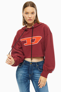 Укороченная толстовка F-Dinie-A с капюшоном от Diesel (Дизель). Капюшон, затягивающийся на шнурок, длинные рукава, манжеты в рубчик, вышитый логотип спереди и прямой подол. Цвет: розовый. Состав: Полиэстер/Хлопок