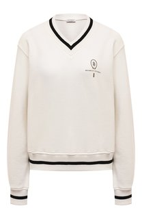 Для изготовления белого свитшота с V-образной горловиной мастера марки, основанной Брунелло Кучинелли, использовали легкий трикотаж. Его связали из гладкого длинноволокнистого хлопка, создавшего при плетении идеально ровную шелковистую фактуру. Модель с...