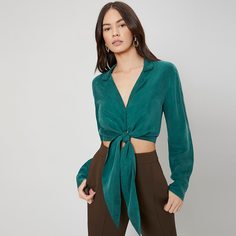 Бирюзовый Элегантный Длинный рукав Полиэстер Одноцветный рубашка Неэластичный Весна / Осень Блузы, size features are:Bust: ,Length: Короткий ,Sleeve Length:Длинный рукав