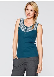 Восхитительный топ объединяет в себе практичность и невероятно женственный шарм. Приталенный покрой без рукавов, круглый вырез и хлопковый материал делают этот топ прекрасным выбором на лето, а кружевная кокетка и декоративная планка с пуговицами придаю...