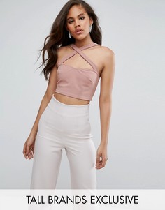 Топ для высоких NaaNaa, Эластичная ткань, Перекрестная горловина, Застежка-молния, Укороченная длина, Облегающий крой, Машинная стирка, 95% полиэстер, 5% эластан, Размер на модели: UK 8/EU 36/US 4, Эксклюзивно для ASOS. NaaNaa знает толк в одежде для ве...