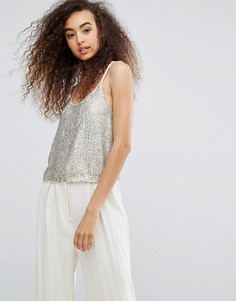 Топ Outrageous Fortune Блестящая текстура V-образный вырез Тонкие бретельки на спине Расклешенный крой Классический крой Не слишком свободный и не слишком обтягивающий