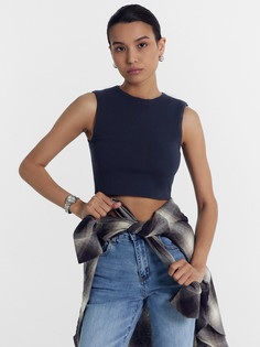 Укороченный облегающий топ на широких бретелях. Выполнен из трикотажной рибаны – в тонкий рубчик. Вырез формы «каре». Однотонная расцветка делает этот топ универсальным, топ без рукавов подойдет практически под любой образ. Материал изделия мягкий итакт...