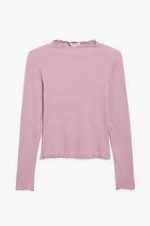 Топ в рубчик с длинным рукавом, сборкой спереди и волнистым краем.Облегающий кройВ рубчикСборка спередиОбхват груди для размера S — 80 см, длина — 48 см.