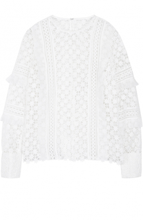 Воздушная кружевная блуза Self Portrait с узкими нитями, соединяющими однотонные цветы. Отделка плотной органзой подчеркивает викторианский стиль изделия. Манжеты выполнены из широких присборенных оборок. Высокая оборчатая горловина украшена шнуровкой и...