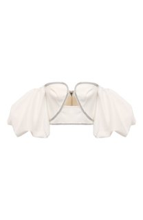 Белоснежный топ-бюстье, позволяющий продемонстрировать королевскую осанку, одинаково гармонично дополнит и повседневный образ с джинсами, и наряд для вечеринки. Для изготовления укороченной модели с утрированно объемными драпированными рукавами использо...