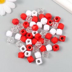 Бусины пластик Кристалл многогранник, Красный, белый, прозрачный набор 30 грамм 1х1х1 см , для рукоделия, плетения, вышивания Бисером расшивают одежду, головные уборы, обувь, предметы интерьера. Из бисера делают оригинальные авторские украшения. Бисер и...