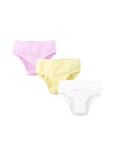 Набор трусов для девочки. Модель на трех ажурных резинках. Украшены принтом. Продаются по 3 штуки разного цвета в упаковке.