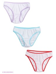 Комплект, состоящий из трёх классических хлопковых трусиков бикини с контрасным принтом в горох и яркой отделкой.