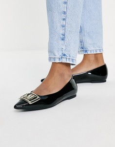 Обувь River Island Эту обувь захочется носить, не снимая Асимметричный дизайн Регулируемый ремешок на пятке Застежка-пряжка с язычком С логотипом Заостренный носок Плоская подошва