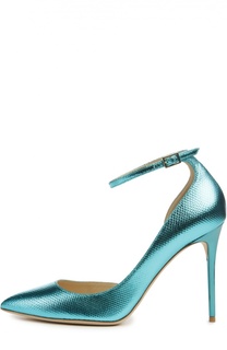 Туфли бирюзового цвета, с тиснением под игуану вошли в коллекцию сезона весна-лето 2016 года. Племянница Джимми Чу Сандра Чой дополнила модель на высокой шпильке тонким ремешком с металлической пряжкой, фиксирующим обувь на щиколотке. Состав: Кожа нату...