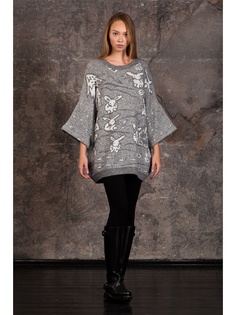 Женская туника свободной формы прямого силуэта длиной до колена, плечо спущенное, рукав втачной до локтя. Горловина округлой формы с обтачкой. Без карманов. Линия низа фигурной формы. На рукавах и спереди дизайнерский принт. Ворот: округлый вырез Детали...