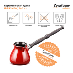 Турка Ceraflame Ibriks сделана из бразильской керамики. Ведь классический кофе, сваренный по-турецки, готовится именно в керамической посуде.Вкус в турке получается насыщенным еще и благодаря ее форме. Эта турка имеет конструкцию, приближенную к классич...