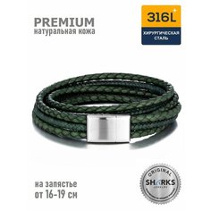 Многослойный Браслет обмотка на руку SHARKS. Браслет-обмотка с акцентной стильной застежкой на надежном магните. Застежка изготовлена из прочной стали 316L. Не окисляется и не темнеет со временем. Размер развернутого браслета — 42 см, в собранном на рук...