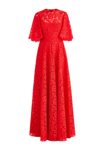 Приталенное вечернее платье с расклешенным подолом выполнено в насыщенном алом цвете. Мастера марки, основанной Валентино Гаравани, сшили изделие из плотного хлопкового кружева с фактурным цветочным узором. Модель с длинными рукавами и вырезом-лодочкой ...
