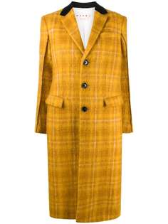 Пальто на пуговицах от Marni (Марни). Зазубренные лацканы, застежка на пуговицах спереди, прорезной карман на груди, длинные рукава и шлица по центру сзади. Цвет: желтый.