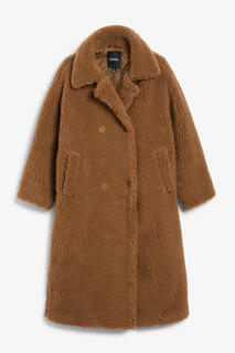 Пальто Monki Прекрасно сочетается с прохладной погодой Воротник "борг" Планка на пуговицах Заниженная линия плеч Четыре передних кармана Контрастная строчка Крой длиннее стандартного Свободный крой Свободная посадка по фигуре
