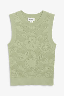 Трикотажный жилет с круглым вырезом и отделкой в рубчик.Стандартный кройОтделка в рубчикКруглый вырезMonki cares: сделано из переработанного полиэстераОбхват груди для размера S — 80 см, длина — 50 см.