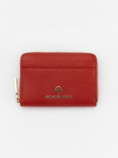 Коричневая кожаная визитница 'Jet Set' от Michael Kors. Несколько отделений для карточек, золотистая бляшка с логотипом, фактурная кожаная деталь.
